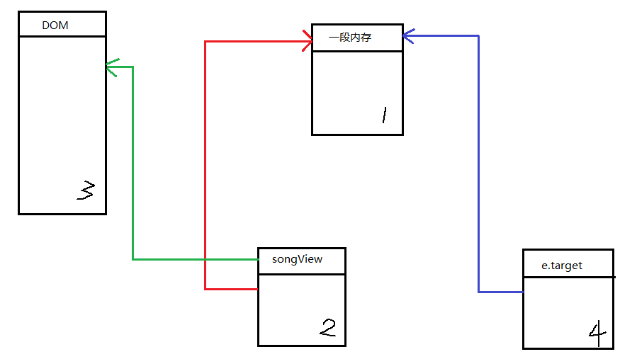 如图所示,当我们执行var songView = new SongView({model: songModel});的时候,内存1被创建,它的内容存我们实例化的jQuery对象;